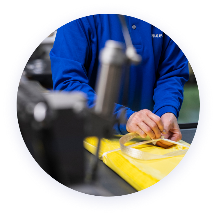 長年の経験から独自に開発・改良を重ねた製造工程により、一般的な設備では難しい厚手加工も安定して生産できるのが強みです。