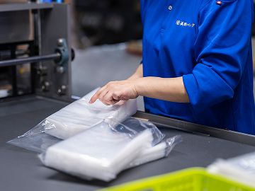 美野パックは、合成樹脂製品の加工を専門とし、特に厚みのあるポリ袋(80ミクロン以上)や、バイオマス素材を使った環境対応型製品、形状や仕様に合わせた特殊加工など、多様なニーズに対応可能です。